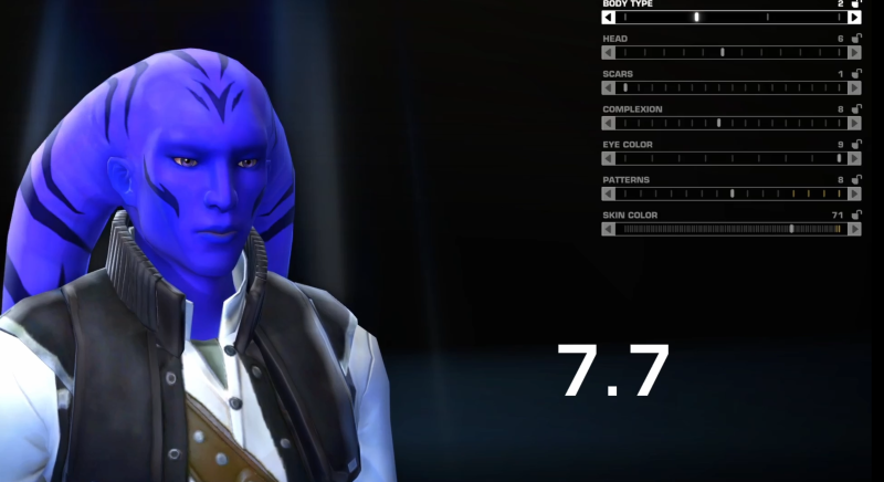 New skin colors will be available on the PTS! Cathar, Chiss, Mirialan, Nautolan, Sith Pureblood, Togruta, and Twi’lek characters will see an abundance of new skin colors added to their skin customization sliders.