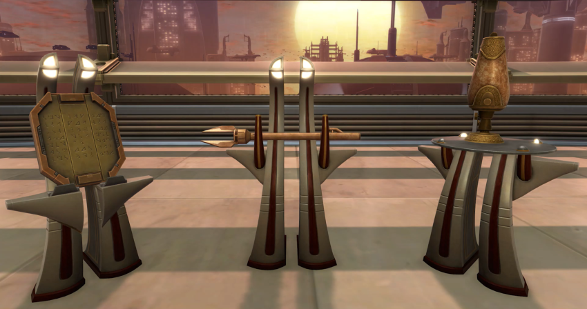 (Coruscanti Scriptures Display, Warstaff Display, and Ceremonial Vase Display Decorations)