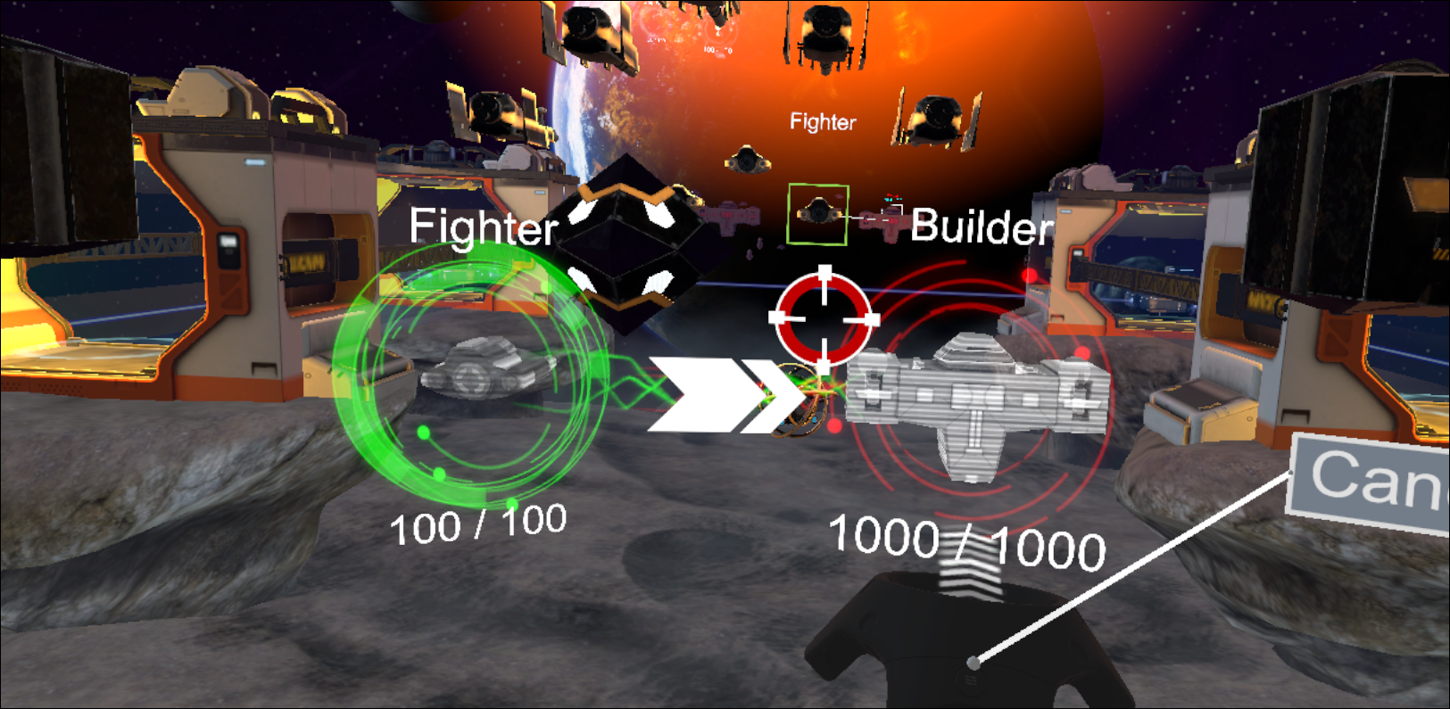 Second, I tackled the UI issue by re-inventing the selection control. It used to just be an arrow that pointed to ships. Now, it uses holograms to show you which ship is being selected. Once you've selected it, it shows clear options of 1) targeting an enemy 2) disrupting an enemy 3) pairing to an ally 4) cloaking an ally 5) healing an ally 6) setting a waypoint. This way you can always tell which ship you're selecting and what you're commanding it to do. Enjoy the rich UI and jump into action faster!