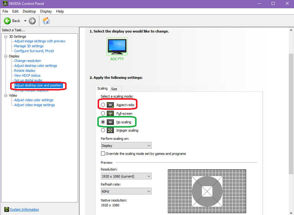 Apparently, if the scaling mode is set at aspect ratio it may prevent you from setting even a screen resolution on other games.
