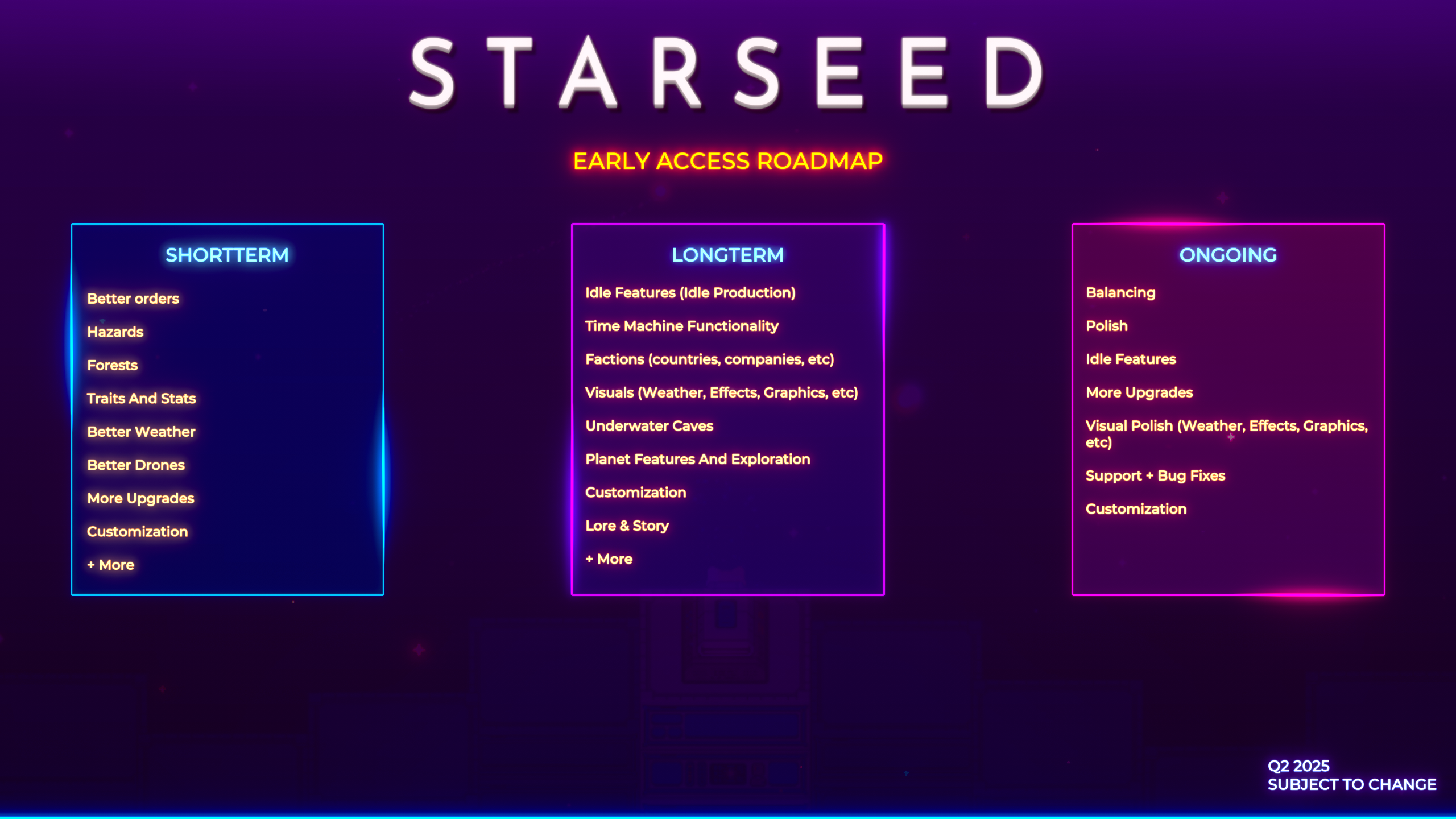 We know that this may be disappointing to many, but us not being able to fully dedicate our efforts to the production during the Early Access phase would have been a disaster. So we made the decision to delay a bit more. We're not sure how long but you can be assured work is being done Starseed continuously (although currently at a slower pace).