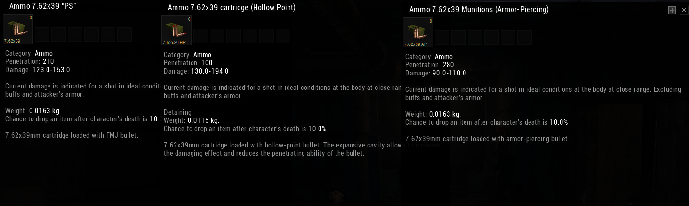 The description of all cartridges will now indicate their “penetration” rate and damage (under ideal conditions, when firing at an unprotected body at point blank range, excluding buffs and armor of the attacked).