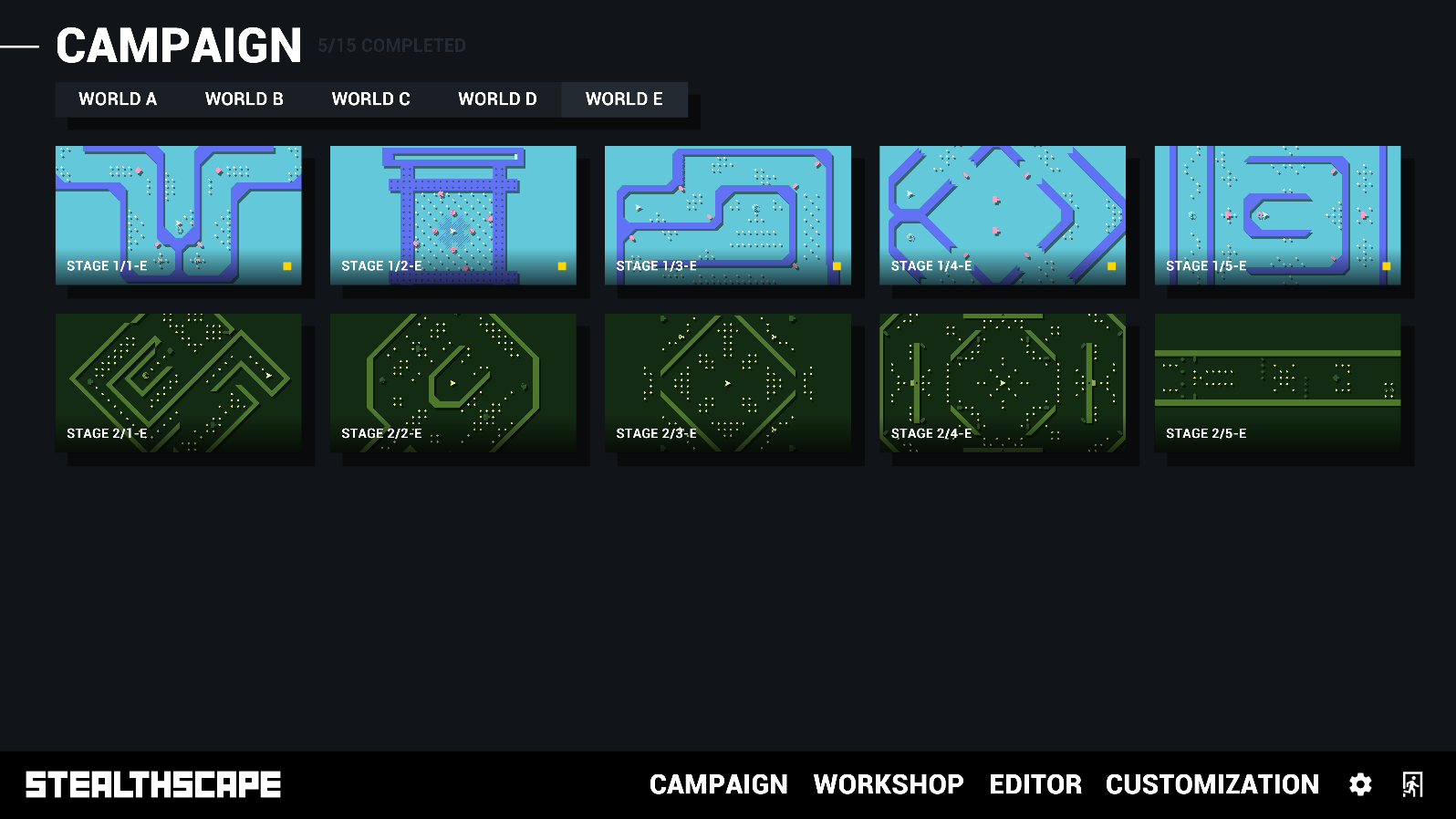 World E is complete with 15 stages