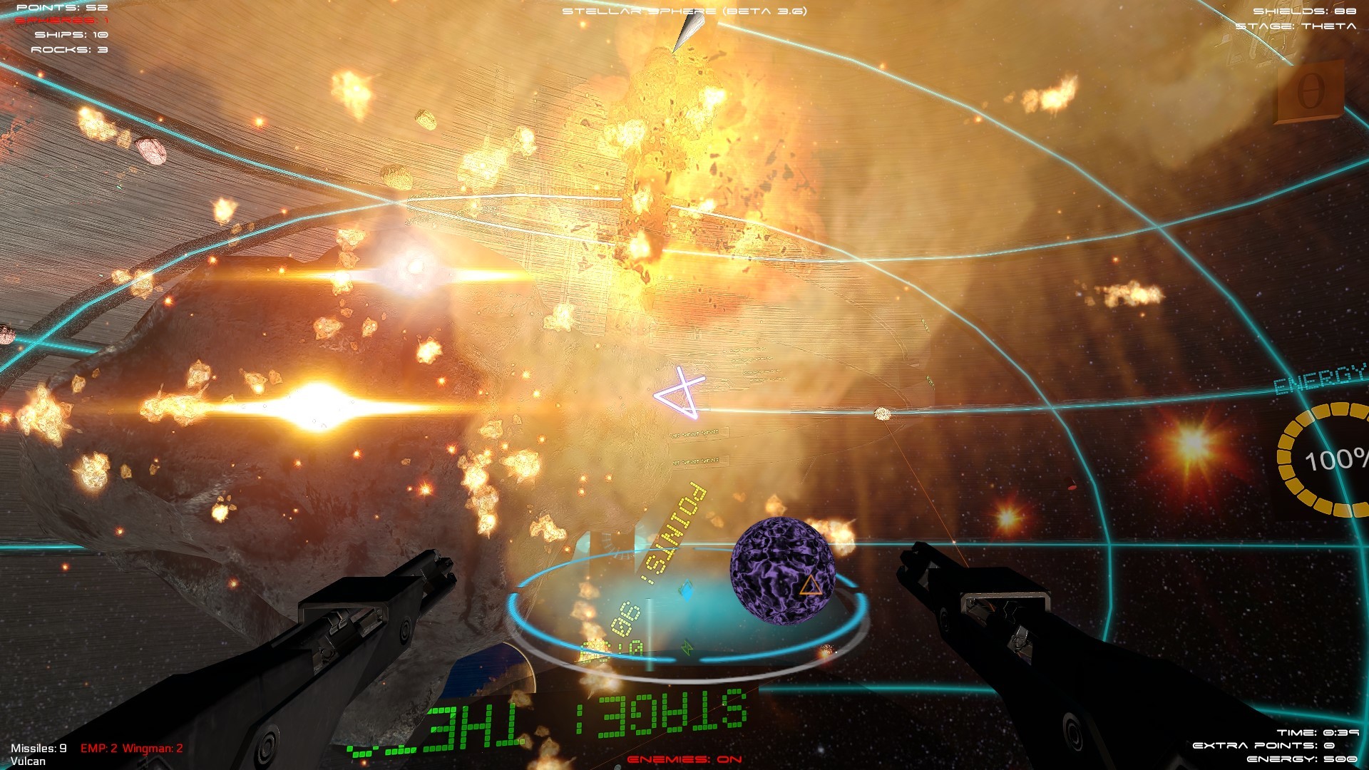 We have added a special mod for Stellar Sphere where you can play the game just destroying asteroids and trying to survive. We have also added the great UFO to the game, with a sound similar to that of the old game. Just shooting and trying to survive.