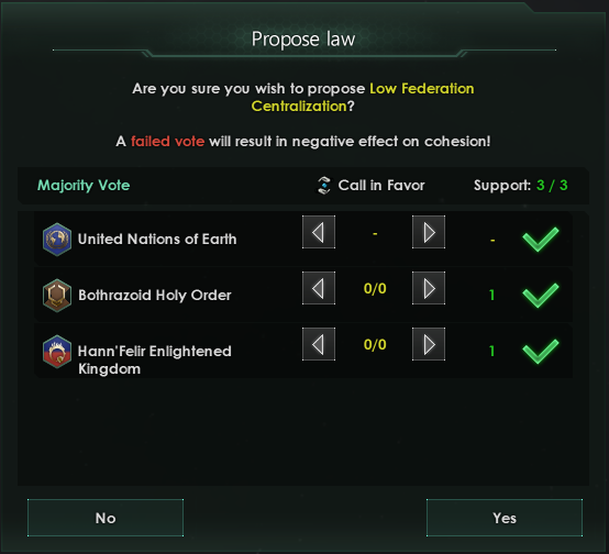 Whenever a federation law has been voted on, you will now get a pop-up that clearly informs you on what the results of the vote were, and how your federation allies voted.