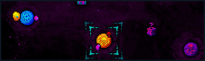 I wanted to add much more visual clarity and generally a bit of polish overall. So for example, objects, enemies, etc, now have a black outline and a black background blurred shadow so the important stuff stand out. The Adventure mode has also had improvements. Instead of a janky menu to choose your worlds to explore you now have a galactic map with some bells and whistles. Each of the special rooms also has a little theme, rather than them all being big chests (such as a friendly shopkeeper to buy the unlockable hats from).