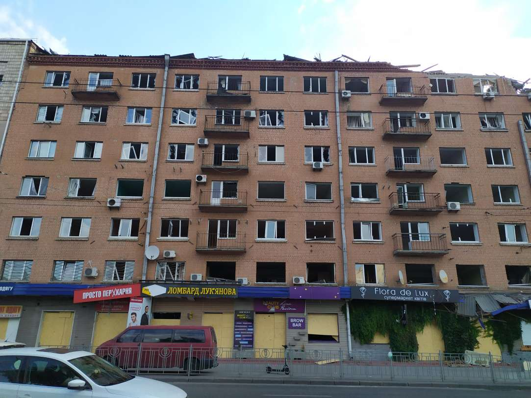 Last time I promised you photos of the damaged houses on our way from the subway station to the office, but I could not have predicted that Russia would decide to add some extra ones and destroy one more building that we pass on our way from the subway station to the office. They also hit a playground of the kindergarten which the daughter of our Founder Ihor Tymoshenko was attending before the war.