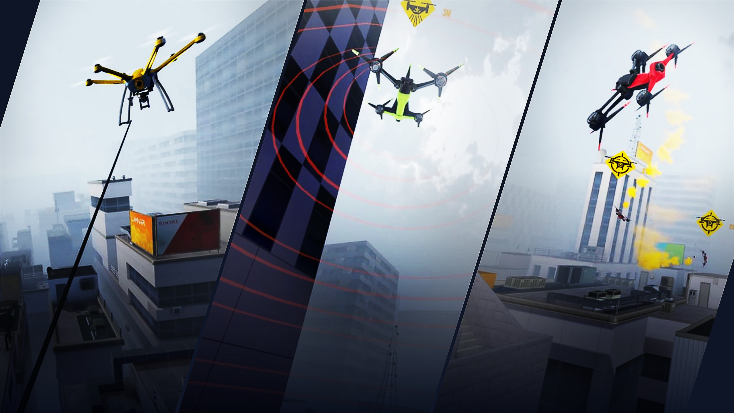 Drones, originally introduced in the Hook the Drone quest, now fly around the map rather chaotically, creating dynamic grappling points for the player.