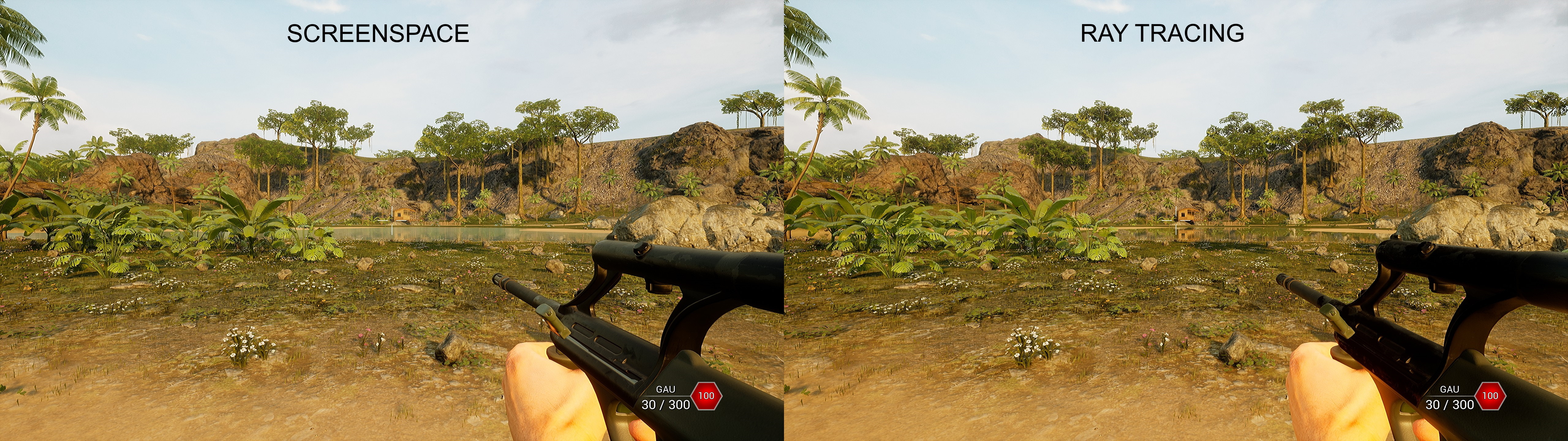 Comparison between the regular Screen Space Global Illumination and Reflections and the new Ray Traced versions: