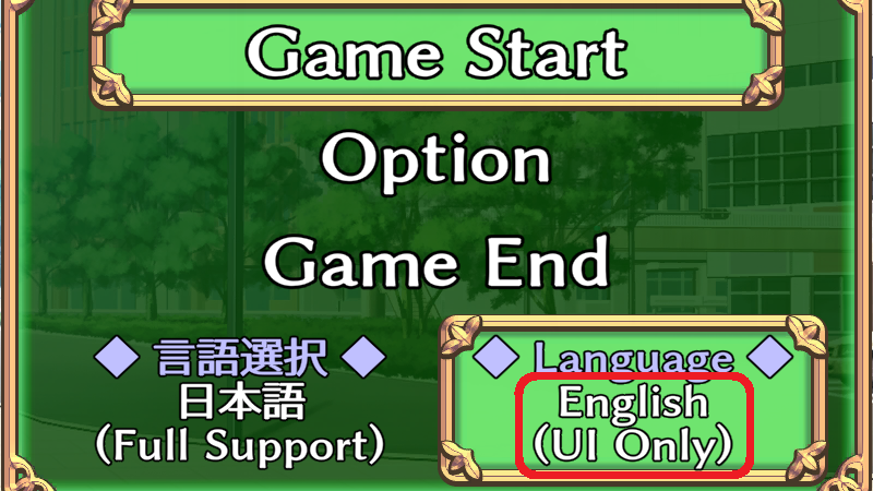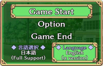 If you are using PC with non-Japanese settings, "English (α version)" will be automatically selected in title menu. (as following)
