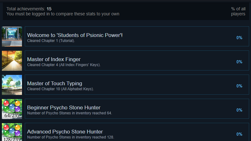 Yakuentei is now under preparing Steam Achievements about 'Students of Psionic Power'. (現在、「心の力の生徒達」の Steam 実績を準備中です。)