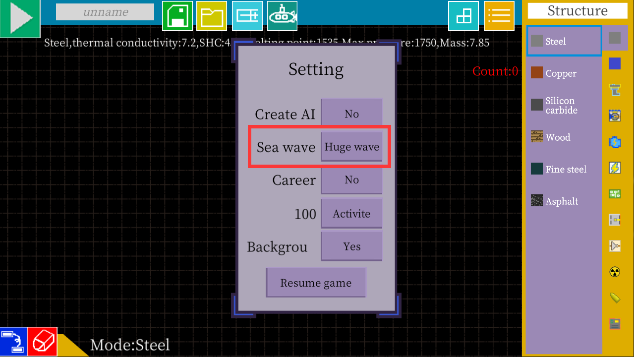 3.6.7 Update: Model Export: 1. The model made in the assembly room can be exported to Obj format, so that you can open it with other 3D modeling software. The exported model is saved in the "User/exps/" folder. The User folder can be opened in "setting" menu. 2. Fix bugs: (1) Errors will be reported when loading model accessories that do not exist. (2) Hydrogen cannot be used in steel furnaces. (3) Hydrogen cannot be recovered.