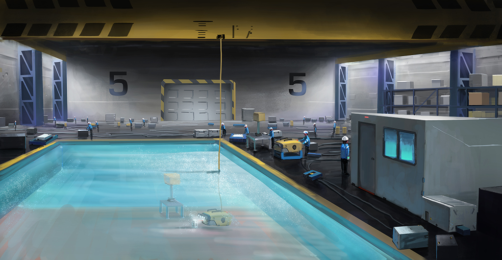 Fixed/Dives: Underwater environmental light still active after ROV resurfaces (a faint bluish hue).
