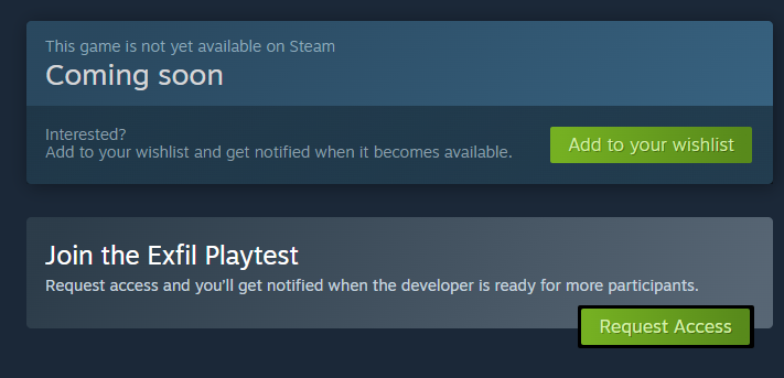 Don't forget Exfil will be in SteamNextfest starting this monday and running for 7 days. This event will be running on the DEMO branch as per steams rules. So don't forget to push that green button to gain access!