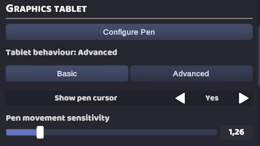 So, we’ve added tablet support with two different possible behaviours: “Basic” or “Advanced”, to choose according to your preferences. Using a tablet allows for more precise control of your brushes, and supports pressure for most of the tools!