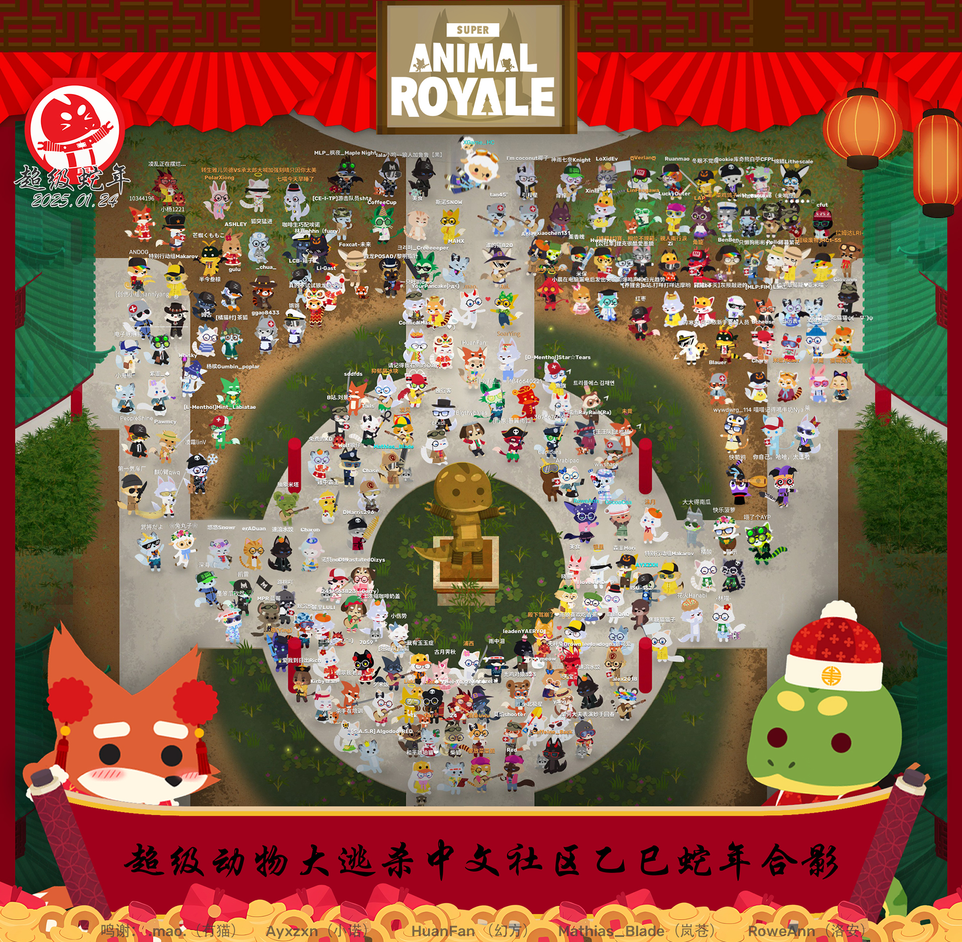 Our Chinese community also came together to create a MASSIVE group photo to commemorate the Year of the Super Snake! Through clever editing and coordinated in-game photo shoots, they managed to fit over 64 Super Animals into a single shot!
