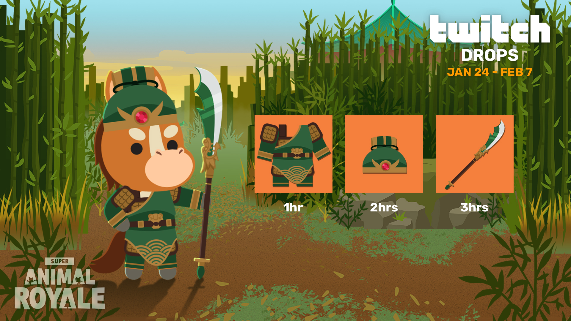 Unleash your inner warrior with the return of the Guan Yu Twitch Drops set! Earn all three items by tuning into Drops-enabled streams on Twitch from now until Friday, February 7th.