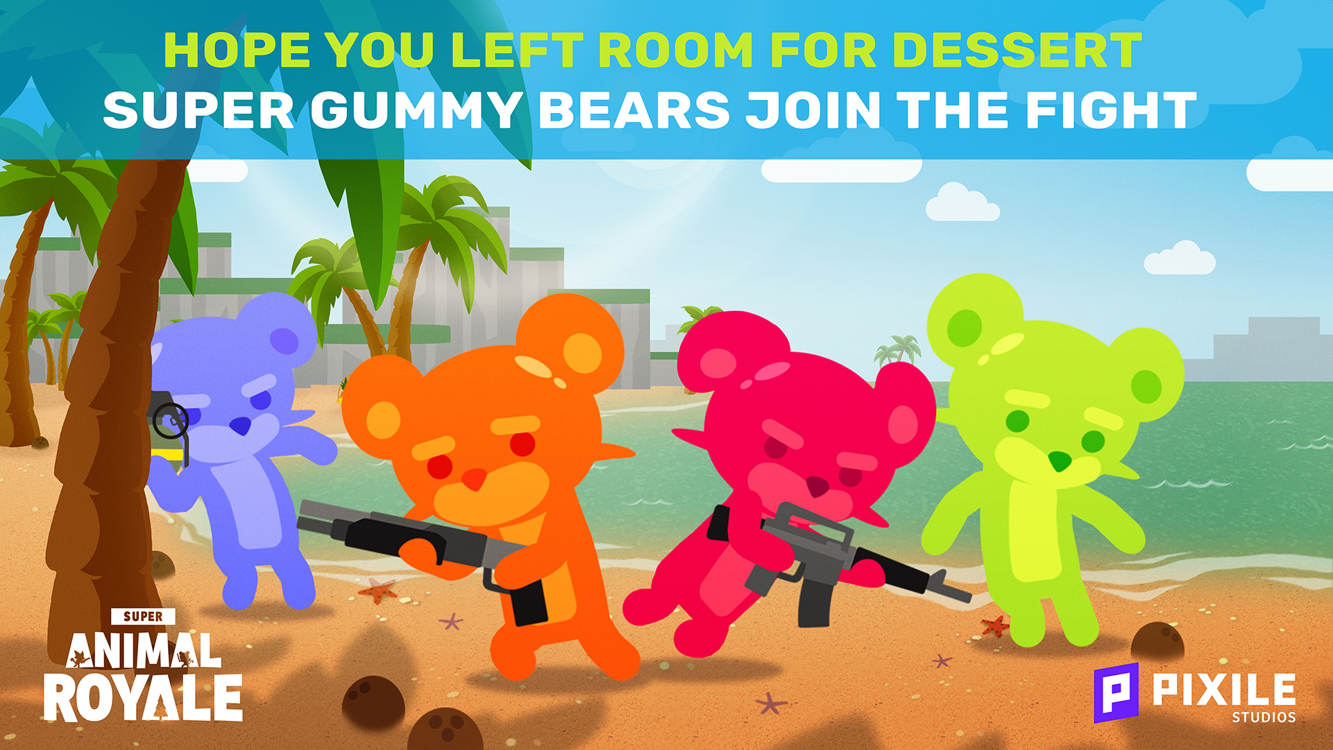 The Super Summer Royale event has ended and the Super Beavers are done cleaning up the last of the fruit baskets, but they left some dessert! Super Gummy Bears join the fight in Berry, Lime, Orange and Cherry “flavors.”