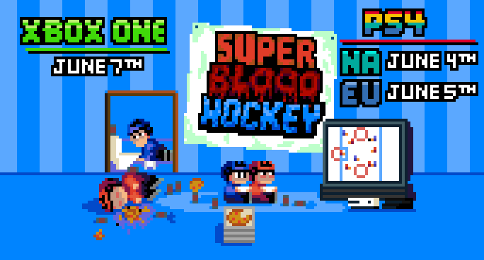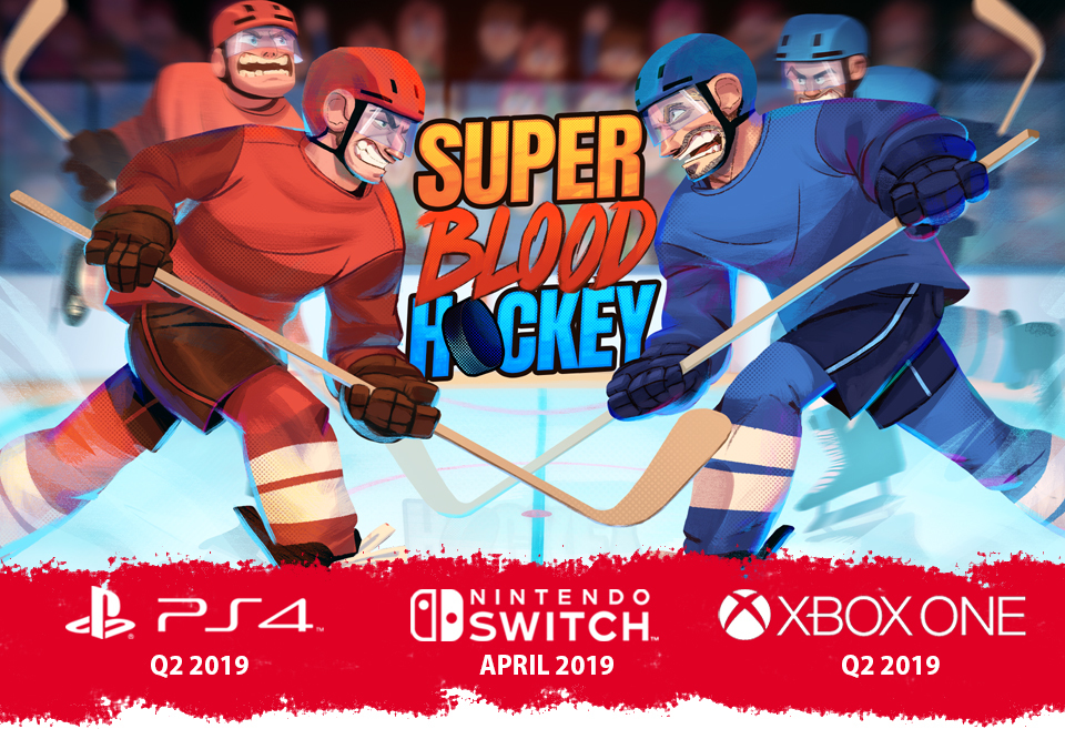 By popular demand, I am happy to announce that Super Blood Hockey will be launching on Nintendo Switch™ on a still-to-be-confirmed date in April, while the PS4™ and Xbox One™ versions will follow sometime in Q2 2019.