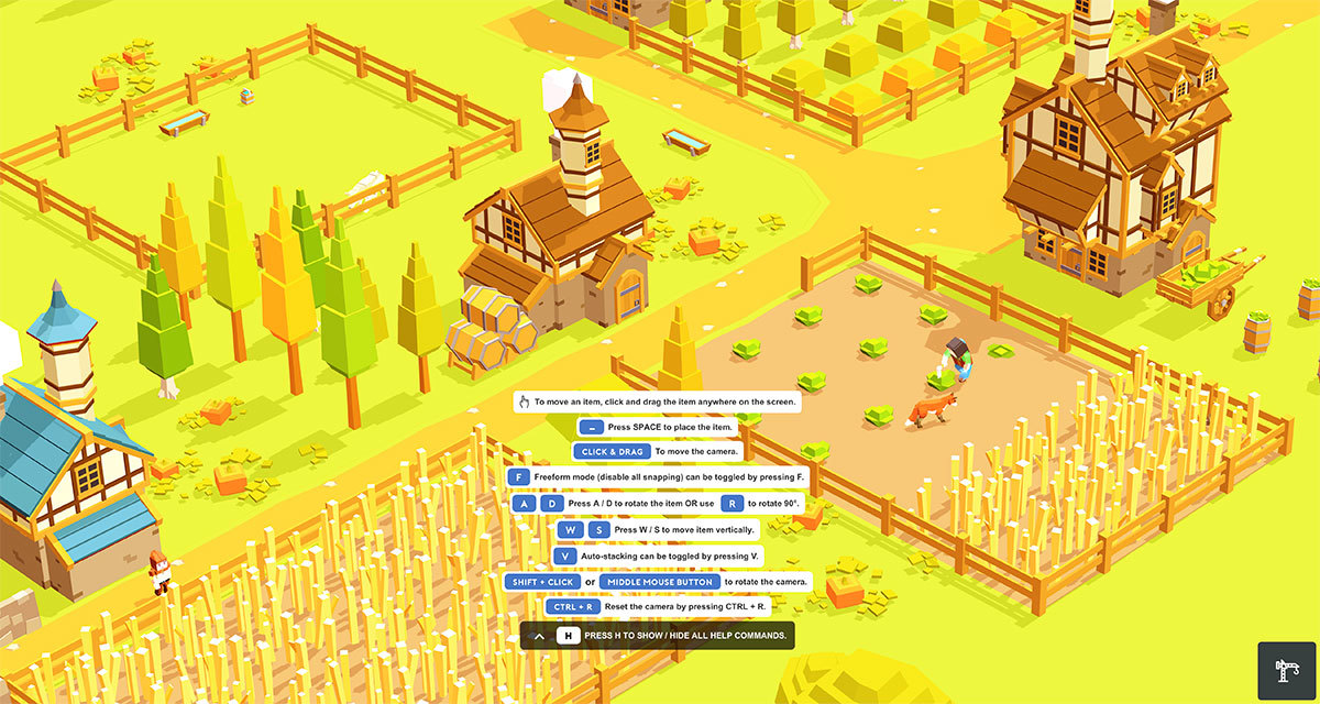 Hello lovely builders! this is just a little update that adds a little menu with a list of some of the essential shortcut keys. You can press "H" to toggle the help menu on/off. I hope it's useful.