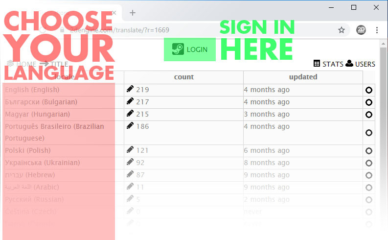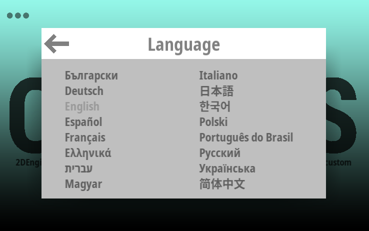 Huge thanks and shoutouts to Jether who translated the game to Chinese. The game includes dictionaries for a number of other languages (like Japansese, Korean, etc) although these are not publicly mentioned because the interface is still incomplete.