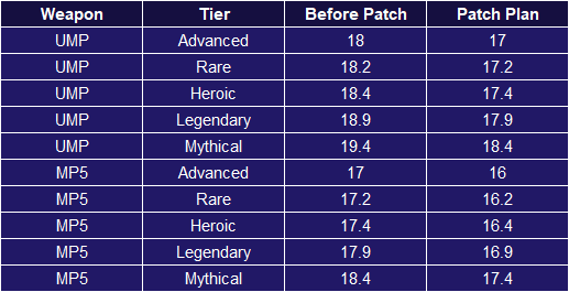 🔸 SMG - Weapon’s Damage has been changed. (UMP, MP5)