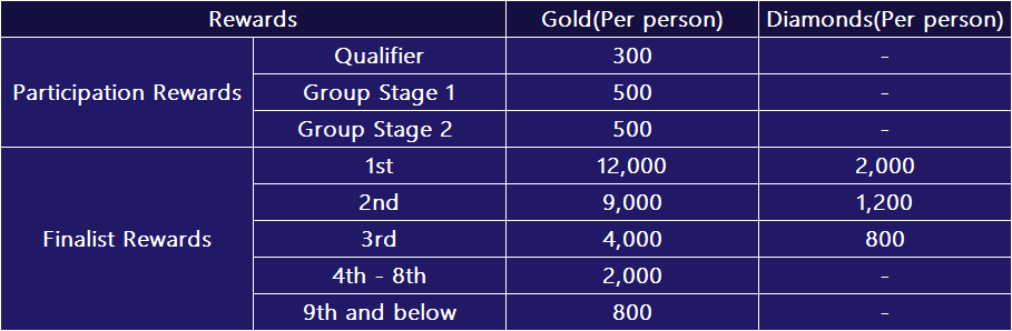 ■ Prizes - Prizes will be awarded to the finalists of the daily Super Tournament. - SUPER Tournament Participation and Finalists Rewards (Per person)