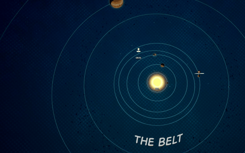 The Solar Map will be unlocked at the end of the Early Access story. This allows you to continue your playthrough without interruption. The current Solar Map we've put in place is a lighter version which we hope to expand later down the line, but right now you'll already be able to take your spaceship to other asteroids and pick up Contracts.