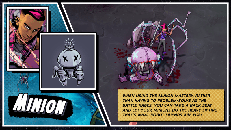 Why get your hands dirty when you have others to do the work for you? When using the Minion Mastery, rather than having to problem-solve as the battle rages, you can take a back seat and let your minions do the heavy lifting - that’s what robot friends are for!