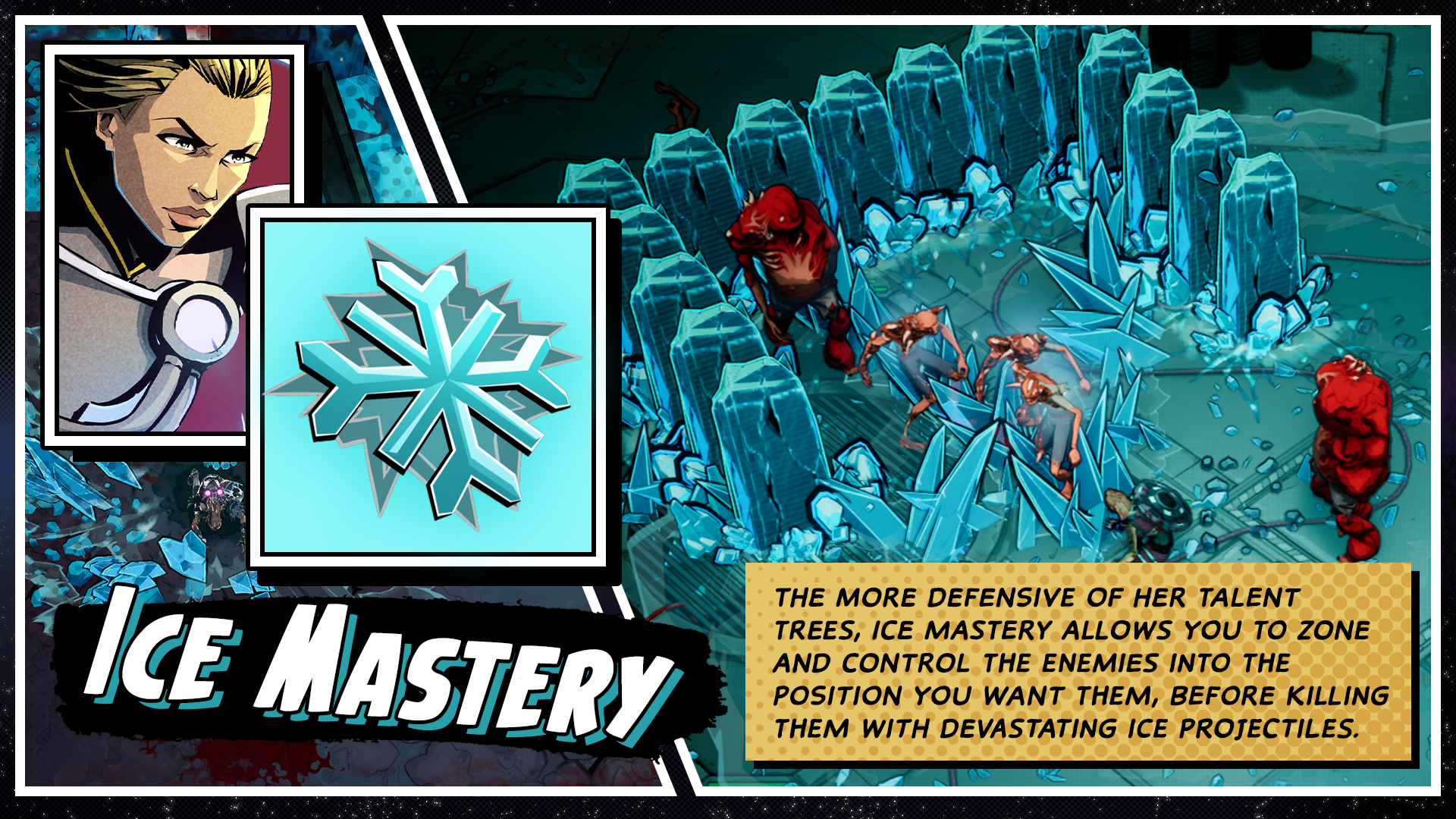 The more defensive of her talent trees, Ice Mastery allows you to zone and control the enemies into the position you want them, before killing them with devastating ice projectiles.