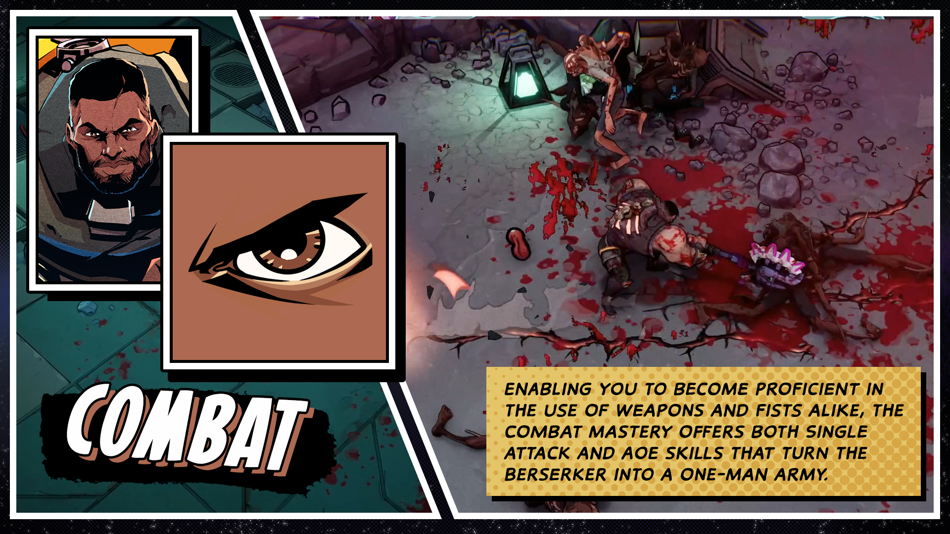 Just by looking at him, you know the Berserker is someone who likes to get into the thick of battle, pummeling and destroying his enemies into a meaty pulp. It’s in situations such as this where proficiency in hand-to-hand skills can be the difference between life and death, and focusing on Combat Mastery allows for just that. Enabling you to become proficient in the use of weapons and fists alike, the mastery offers both single attack and AOE skills that turn the Berserker into a one-man army.