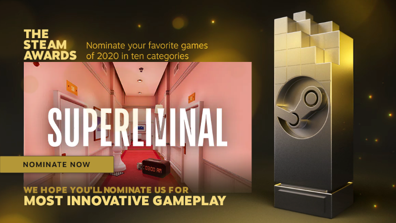 We're proud of the hard work we put into delivery a truly mind-bending, brain-breaking experience with Superliminal. If you think we did a good job, please nominate us in the awards.