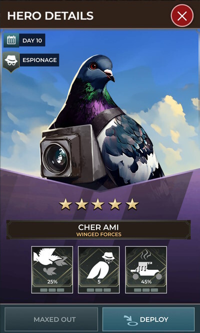 Deployed deep into enemy lines, he silently observes troop movements, hijacks ration lines, and enables an overwhelming spy presence. Commanders who use Cher Ami wisely can cripple enemy morale, economy, and supply chains—often before the first shot is even fired.