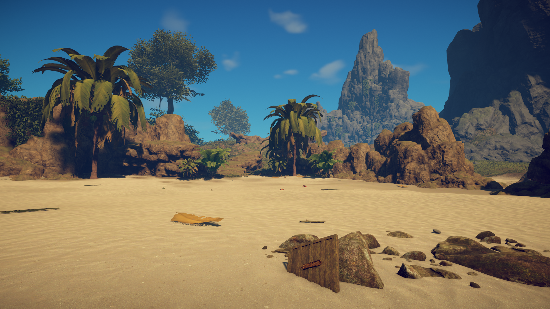 The island is suitable for the construction of a long-term camp. Palm trees grow on the shore, several types of rare crafting resources can also be found there, including clay and mold.