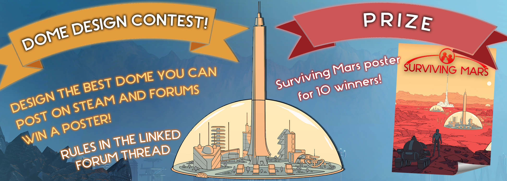 We will pick 10 winners - 5 from Steam and 5 from the Forum and each winner will get an official Surviving Mars poster.