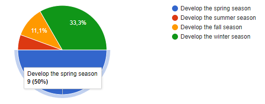 Another vote ended and we have a draw between "Develop the winter season" and "Develop the summer season"! So the next update will be both. The next update will be released by the end of December, so stay tuned!