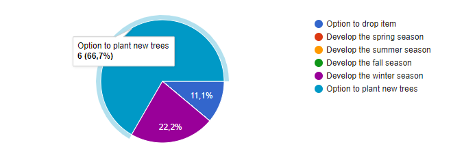 Another vote ended and the results was "Option to plant new trees" The next update will be released by the end of August, so stay tuned!