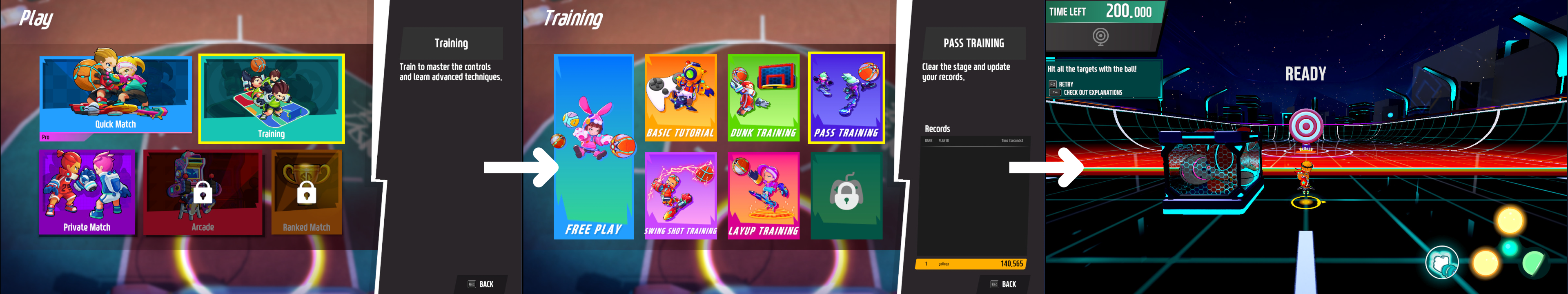 - Pass Training has been added to practice passes. - Click on the Play Menu > Training > Select Pass Training. - Clear the 6 stages within 200 seconds to succeed.