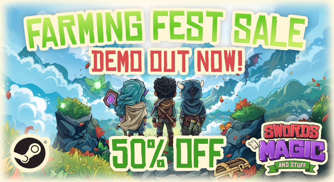 Lastly the game is on sale right now for the Steam Farming Fest until May 6th, for our BIGGEST sale ever. 50% off! Now is the VERY best time to pick up Swords 'n Magic and Stuff, so don't miss out!