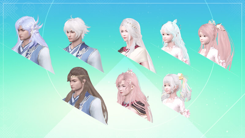 * Sunrise in Haishu * Peach Source * Glossy Curls * Millennial Dunes * Shimmering White Hair * Scent Seeker * Song of the White Clouds