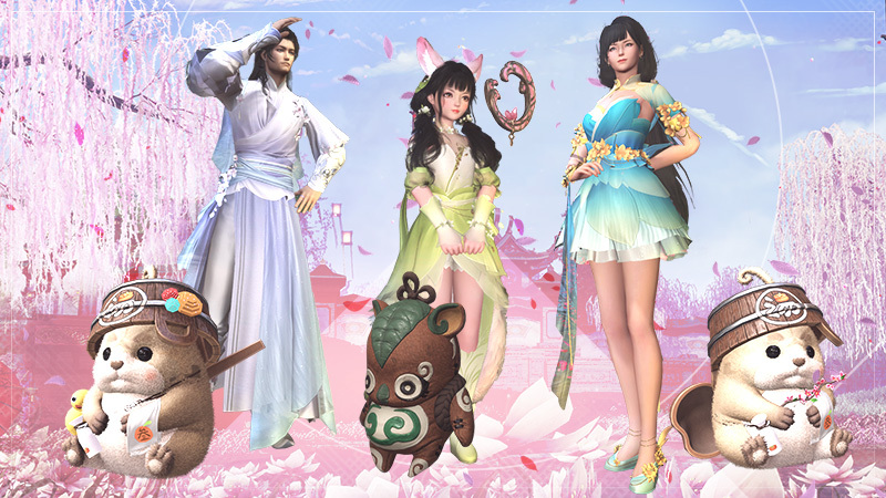 As winter’s grip over Shenzhou gradually weakens, the immortal heroes rejoice in anticipation at the coming of spring every time the sun makes an appearance, however brief. In some cases, they’re looking forward to it so much that they’re already dressing for the new season, whatever the temperature. Do you enjoy walking out of your residence and feeling the sun’s warm rays kiss your skin? Then pick up our sweet and fragrant costumes and celebrate the coming spring in some glorious new threads.