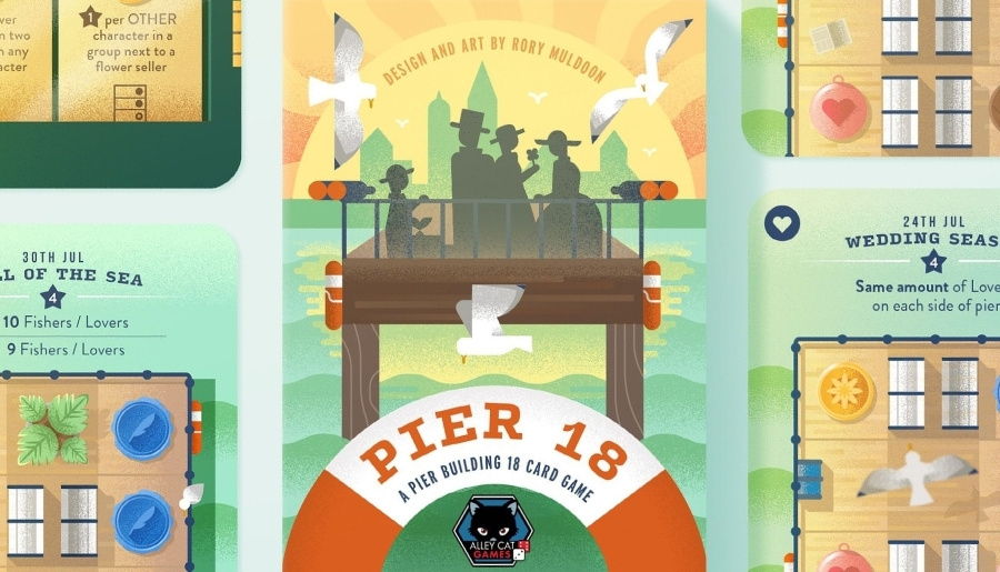 In Pier 18, you take on the role of a Victorian pier builder as you compete to create the country’s greatest seaside pier. Using only 18 cards, you’ll draft and position sections of pier, building your unique structure outwards to sea in an effort to score the most victory points.