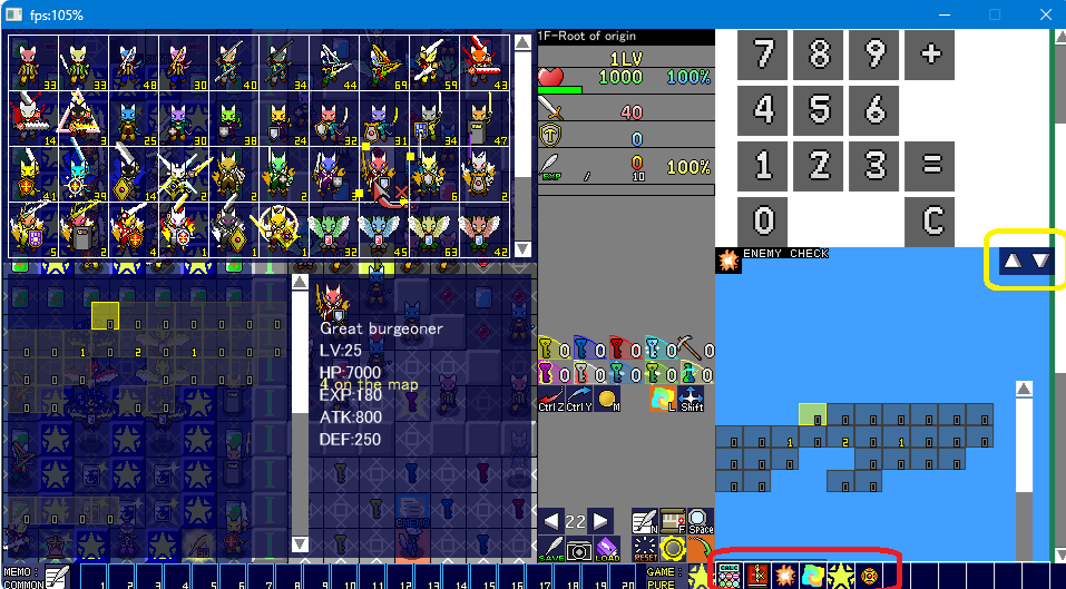 ◆The following content is planned to be displayed in ES. ★Calculator ★Enemy Catalog (enemies can be pinned, allowing you to always check the status of any enemy character and the map where they are located) ★List of reserved Legacy and Magic items, with quick activation buttons ★Clear floor score calculation ★A function to display the Nexus Medals, Sunstones and stages you are currently challenging (for broadcasters) ★A more detailed status screen (we plan to add the ability to check things like weapon status increases and total EXP) ★A function to pin the keys you have reserved ★The previous level log from ★A help screen where you can see a list of the shortcut commands that have been implemented so far