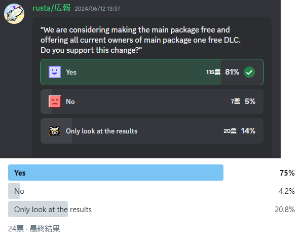 ◆We are conducting a survey on Twitter (now self-proclaimed X) and Discord in advance to make it free. (but I think people who bought recently didn't know anything about the whole process. Sorry.)