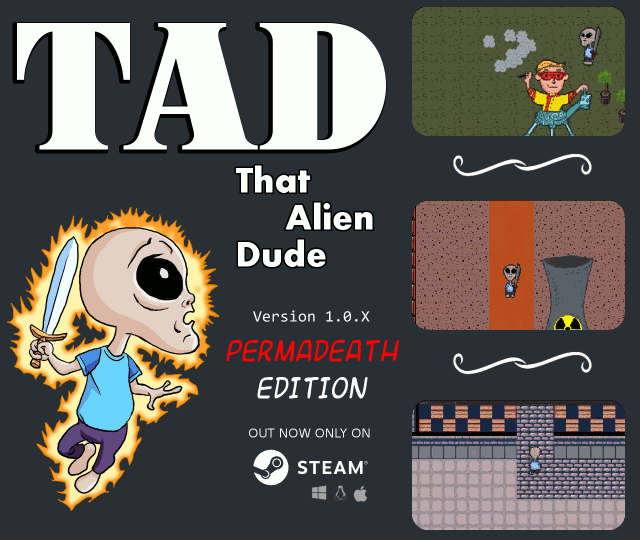 TAD: That Alien Dude has been released. Currently in version 1.0.5, this premiere version of the game features updated dialog, original music, original animation, and a wacky storyline.