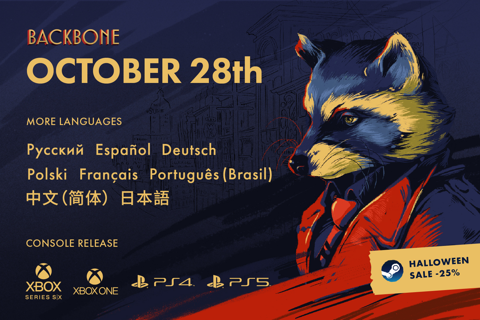 The day has arrived, and the update is live! Here on PC (plus on the newly released PlayStation and Xbox versions), players can now experience the story of Backbone in nine different languages. Additionally, the game is included in Steam's Halloween Sale at 25% off -- so if you've been waiting to get the game, this may be your moment.