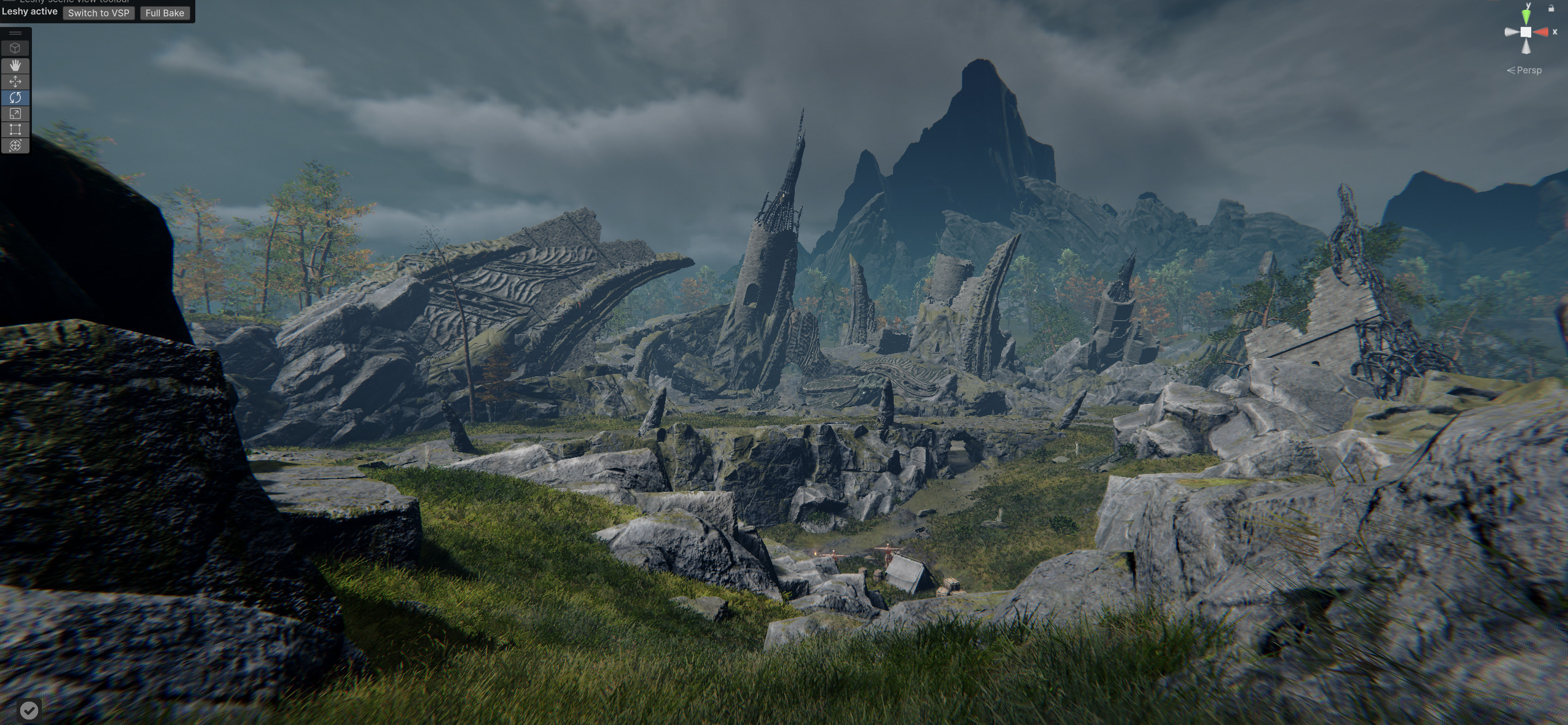 Leshy gives us about 1-1.5 ms (about 9% of our total budget) and requires under 30MB (RAM+VRAM combined while the old solution required ~500MB) while allowing significantly more species of foliage.