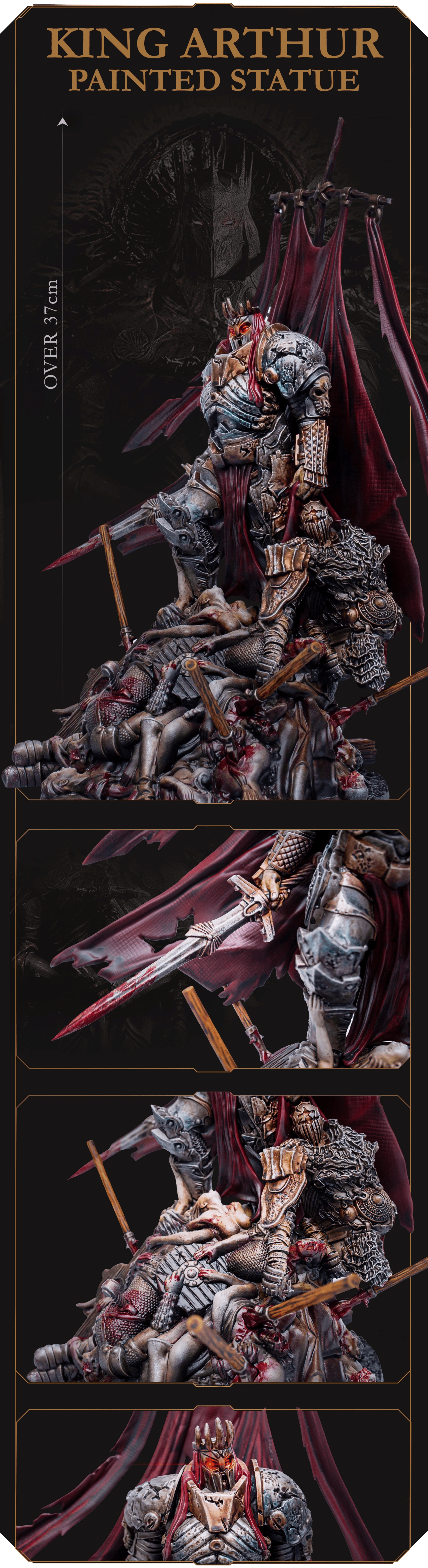 The Once and Future King has come back from the dead, so powerful that he’s unfit to be called human! Immortalized as an epic, 37 cm-tall, painted statue, suited in full armor and wielding his legendary Excalibur, Arthur Pendragon is celebrating yet another battle won. And there are many, many more to come…