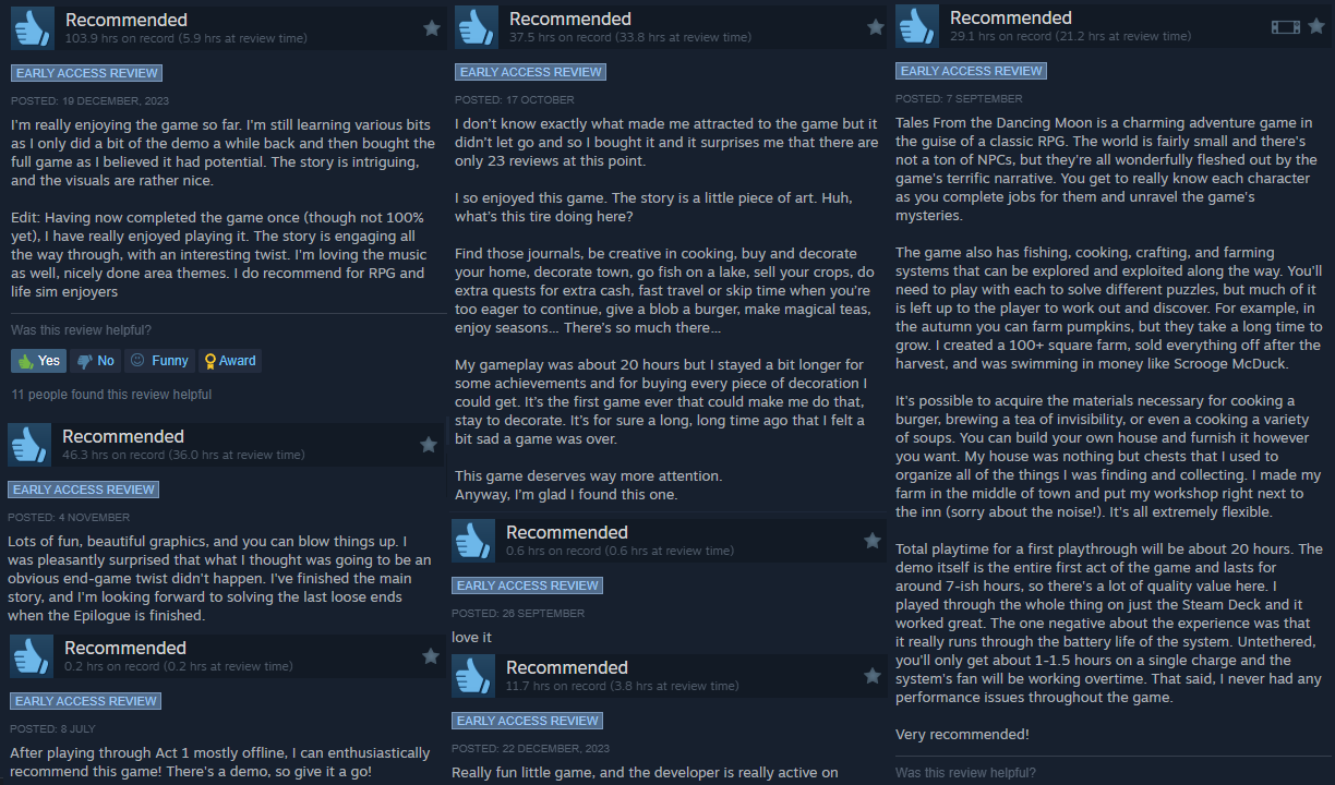 Version 1.0 is coming soon, but not only that - Tales from The Dancing Moon has received a ton of free updates over the course of the Early Access period.