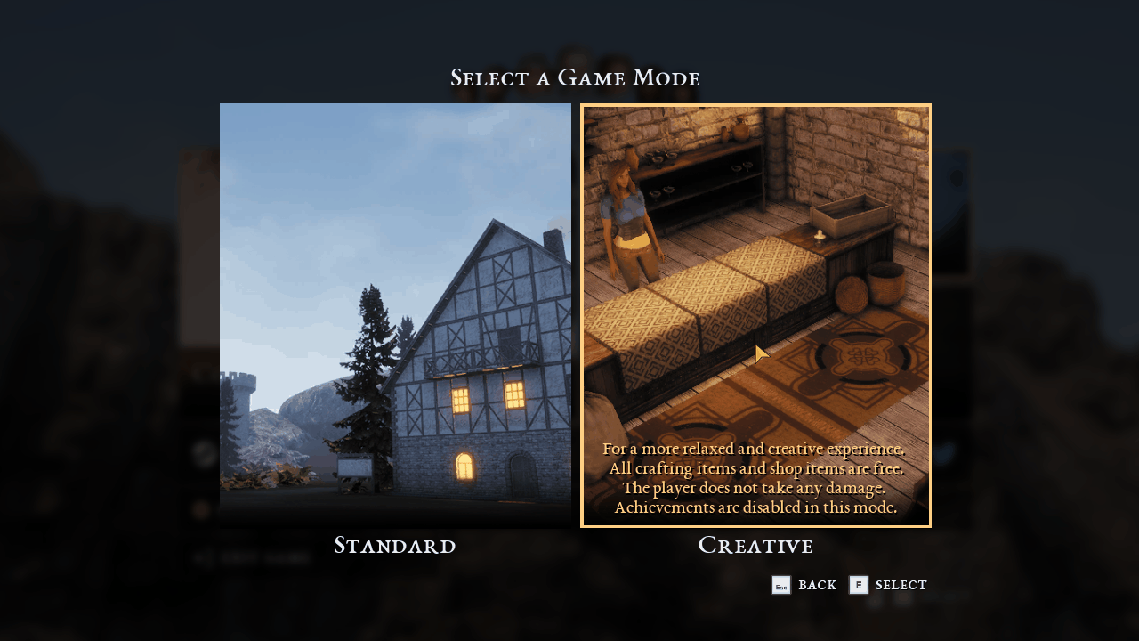 Start the game in creative mode to unlock complete sandbox freedom and for a more relaxed experience. All shop items in this mode are free and craftable items don't require any resources to make. Enemies also do not inflict any damage. However, creative mode is assigned to the save, can not be changed later for that save, and achievements will be disabled.